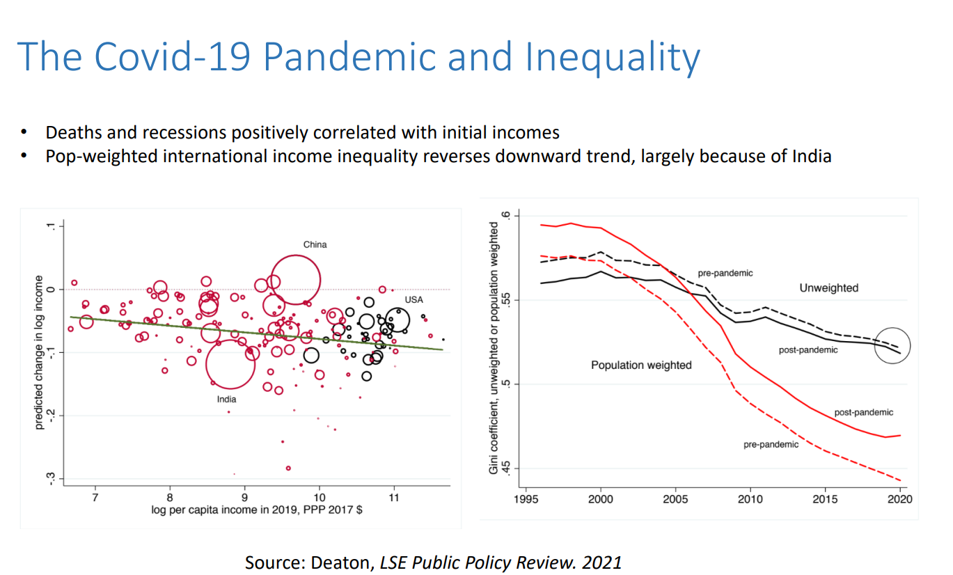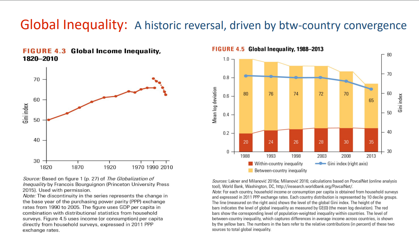 Франсиско Феррейра указал на то, что глобальное неравенство в доходах уменьшилось за последние 2 десятилетия, но это было вызвано снижением неравенства между странами, так как некогда бедные страны догнали богатые страны.