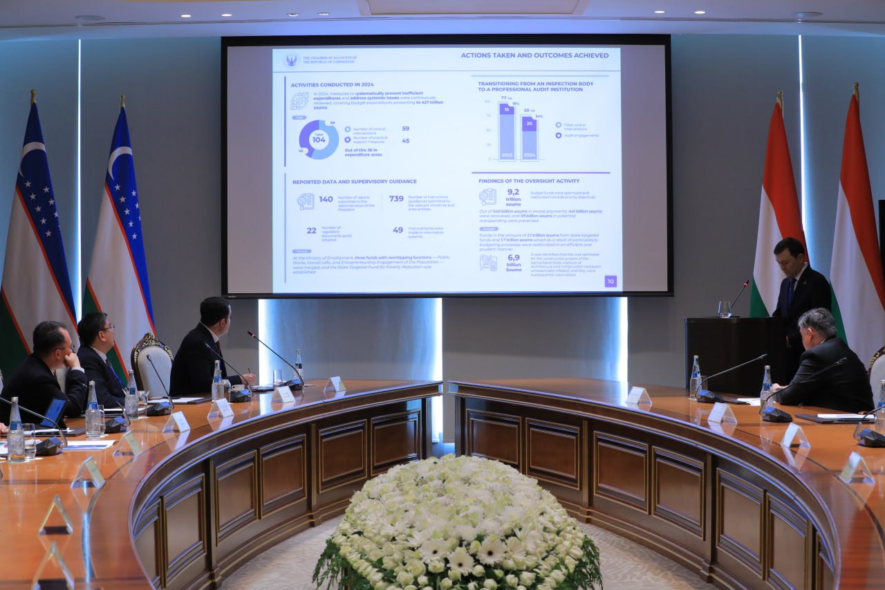 Венгрия Давлат аудит идораси вакиллари эса марказий бюджет мониторинги ва қисқа муддатли прогнозлаштириш, рақамли трансформация ва сунъий интеллект ечимлари бўйича тақдимотлар қилди.